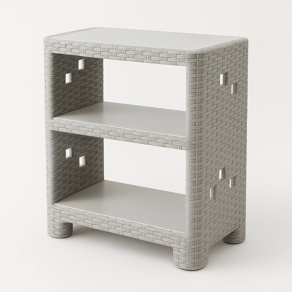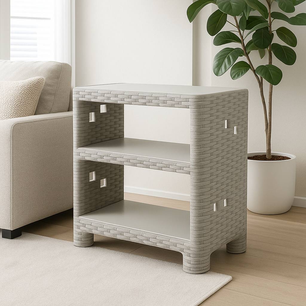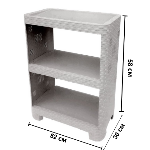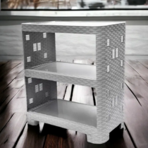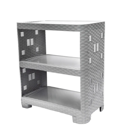 Етажерка ротанг 3 яруси ПГ-8003 сірий – універсальна та стильна система зберігання, яка стане незамінною у вашому побуті. Вона чудово підходить для організації простору в будь-якій кімнаті: спальня, кухня, ванна, дитяча чи передпокій. Етажерка виконана з якісного пластику з ротанг-дизайном, що надає виробу елегантного вигляду та робить його довговічним.